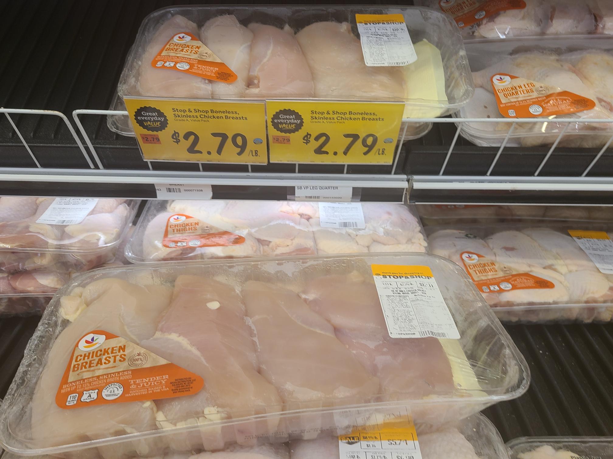 **Costco breasts are mostly trimmed. Stop and Shop breasts are untrimmed.